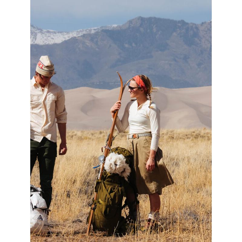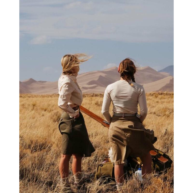 Boulder-skjørtet har vært i produksjon i flere år etter en forespørsel fra vår venn på marken Ragnhild, som lever og ånder fjelllivet. Med inspirasjon fra både eventyrreisende i Afrika fra midten av 1900-tallet til nybyggerne som reiste fra østlige USA vestover til Colorado. Vårt Boulder-skjørt er laget for å møte behovene til et liv utendørs, og er designet med allsidighet i tankene. Lett, men likevel holdbar – med en vokset finish som avslører den naturlige karakteren til vår økologiske bomull.
