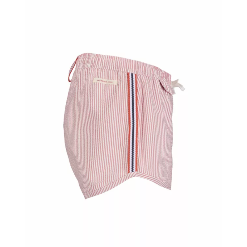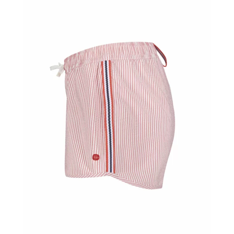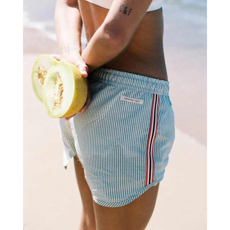 Som sommerens lekne ånd, bør badebukser ikke være for alvorlig. Med et nikk til den klassiske sommertids-«seersucker»-looken med vår klassiske Norgesreima-detalj. Seersucker-stoffet ser ut til å være rynket og er konstruert ved å trekke noen varpgarn strammere enn andre. Dette blir ofte referert til som slakk-spenningsveving, som er en prosess som er definert nøyaktig av tittelen. Når du bruker slakk-strekkvevingen, er resultatet et krøllete stoff som ser ut til å se rynket ut. Fordi det er rynket av naturen, er det ikke nødvendig å stryke stoffet og mange enkeltpersoner velger å pakke Seersucker-klær for ferier på grunn av dette.
