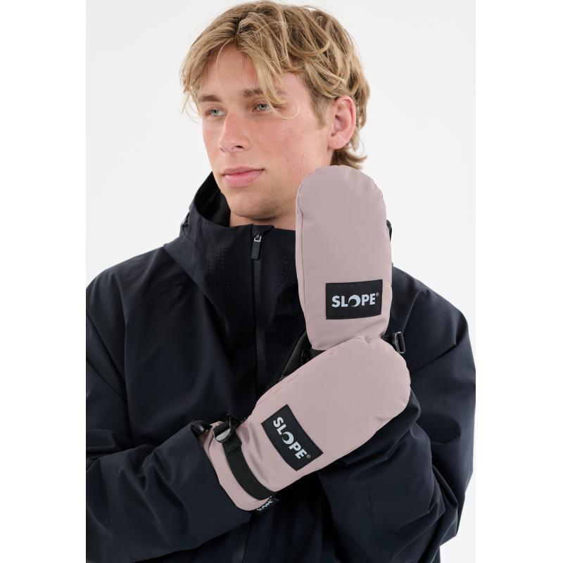 «Gideon»-votten fra SLOPE gir deg det perfekte utstyret for dine eventyr i snøen. De er vanntette og laget av en kombinasjon av funksjonelle materialer som holder hendene varme og tørre. Den har også et vannavvisende belegg. Yttermaterialet på håndryggen er laget av 100 % Oxford-polyester, og den sklisikre håndflaten er laget av 50 % polyester og 50 % polyuretan. Det myke fleecefôret og polyesterpolstringen gir varig varme. Smarte detaljer som festestropper og justerbare håndledd gjør disse vottene til særdeles funksjonelle følgesvenner!