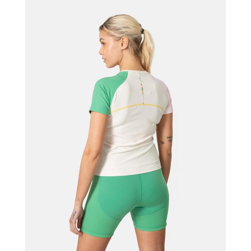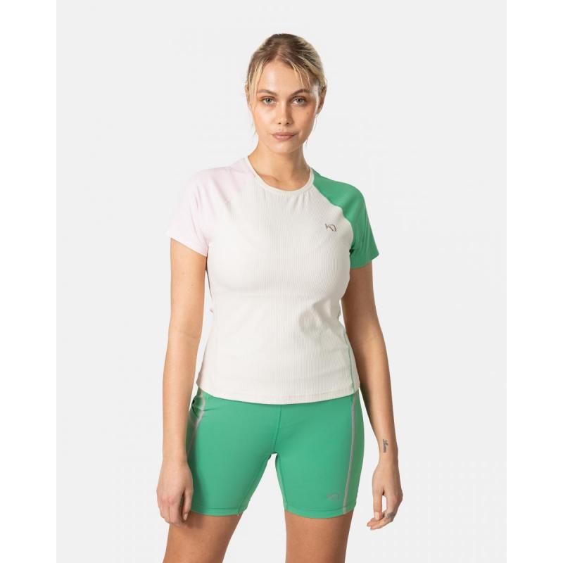 Kari Traa Linnea T-skjorte er en kortermet trøye med rund hals, designet for å være både flatterende og funksjonell. Ribbestrikket stoff og kontrastfargede sømmer legger til et feminint preg. Det pustende materiale vil holde deg kjølig når det blir varmt på treningssenteret eller på tur.
